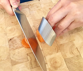 Which brings me to a fabulous find I discovered last week. It's called a Finger Guard from this online shop www.epicstore.nz. You just slip it on your middle finger and it protects the fingers that hold the food while your knife slides right off.